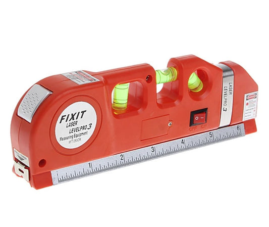 NIVEL CON LÁSER, CINTA MÉTRICA Y REGLA