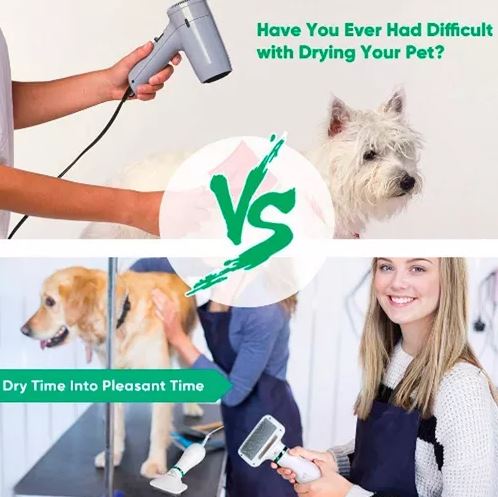 ¡Disfruta de un secado rápido y un pelaje bien cuidado con el Cepillo Secador 2 en 1 para Mascotas! 🐾