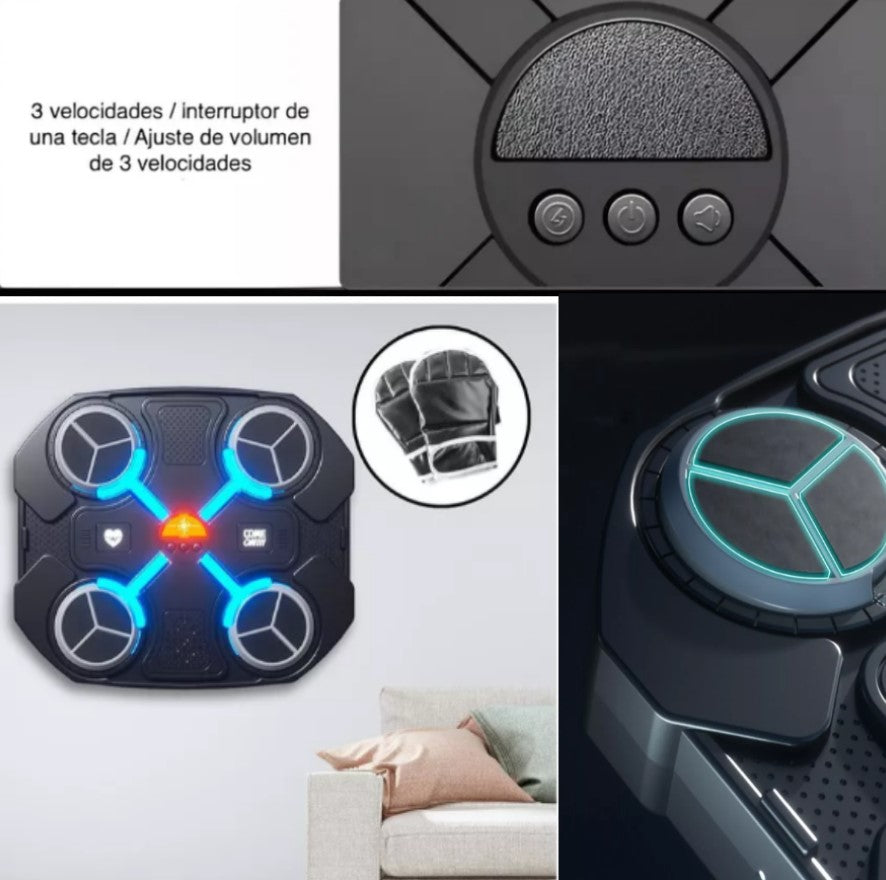 Equipado con luces LED y niveles ajustables de velocidad y volumen, este panel hace que cada sesión de entrenamiento sea emocionante y dinámica. Entrena al ritmo de tu música favorita y transforma tu rutina en un espectáculo de luces y energía.